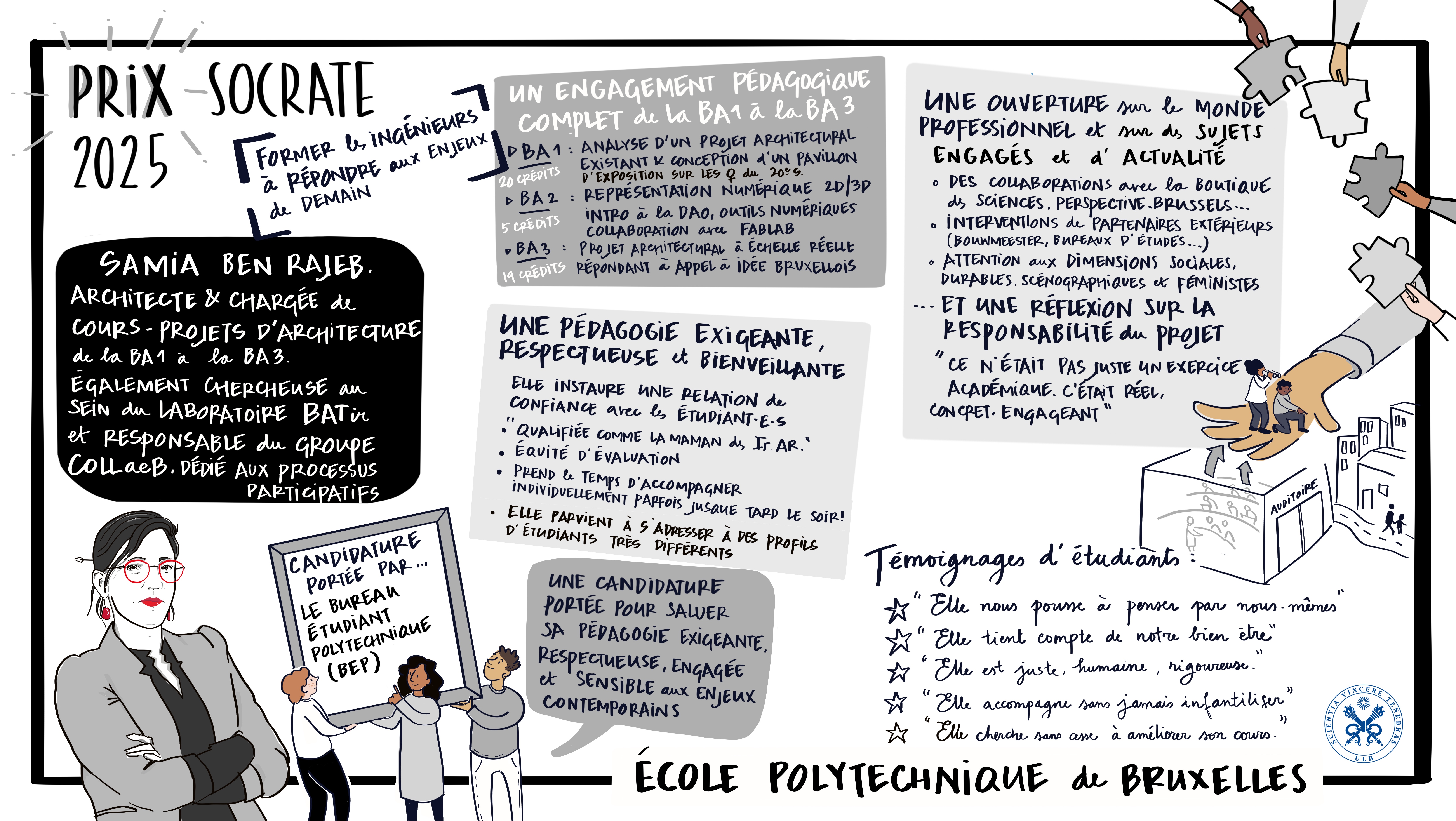 Le Prix Socrate de pédagogie 2025, distinction décernée par les étudiant·es de l’Université libre de Bruxelles, vient saluer cette année l’engagement et l’excellence de deux enseignants : Samia Ben Rajeb (École polytechnique de Bruxelles) et Laurent Licata (Faculté de Psychologie, des Sciences de l’Éducation et de Logopédie). Ce prix met en lumière leur capacité à inspirer, à innover et à placer la pédagogie au cœur de leur mission universitaire.